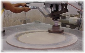 Directed by a CAD/CAM computer expert, the waterjet cuts with tremendous accuracy (.005), outstanding edge quality, and consistency piece after piece. |